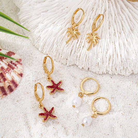3-Pair 18K Gold-Plated Alloy Drop Earrings
