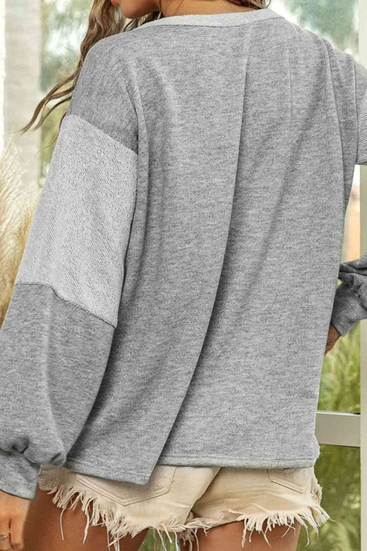 Plus Size Ribbed V-Neck Long Sleeve Blouse