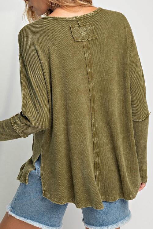 Culture Code Full Size Round Neck Exposed Seam Slit Top