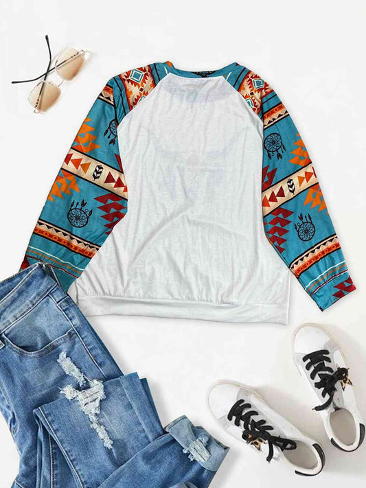 Round Neck Raglan Sleeve Graphic Sweatshirt