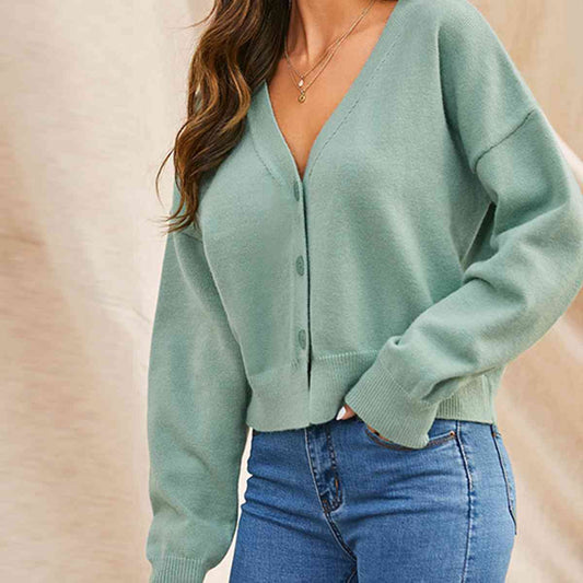 Button Up Drop Shoulder Long Sleeve Cardigan