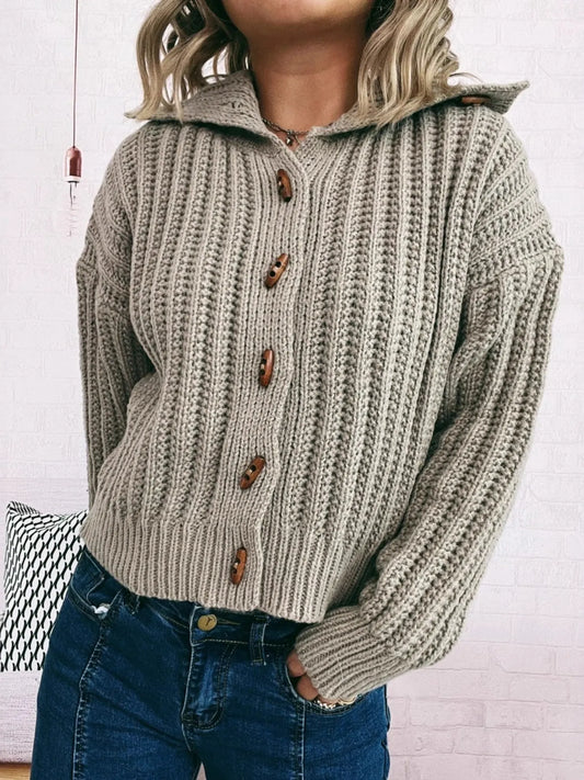Collared Neck Button Down Long Sleeve Cardigan