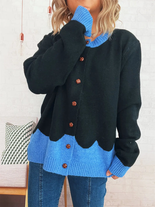 Regular price $110.00 CADRegular priceUnit price / per$110.00 CADSale price $110.00 CADBiBi Color Block Sweater Cardigan with Button Closure