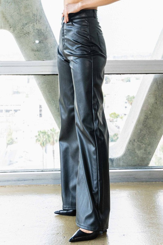 Vegan Leather Wide Leg Pants