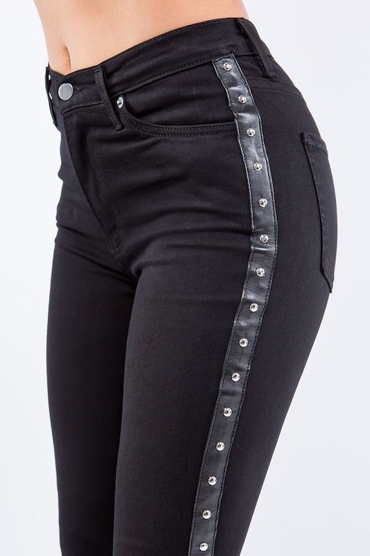 Side Stripe Zip Closure High Waist Jeans