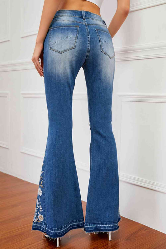 Full Size Flower Embroidery Distressed Jeans