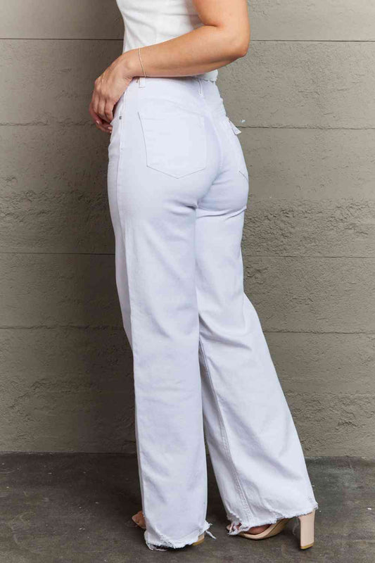 RISEN Raelene Full Size High Waist Wide Leg Jeans in White