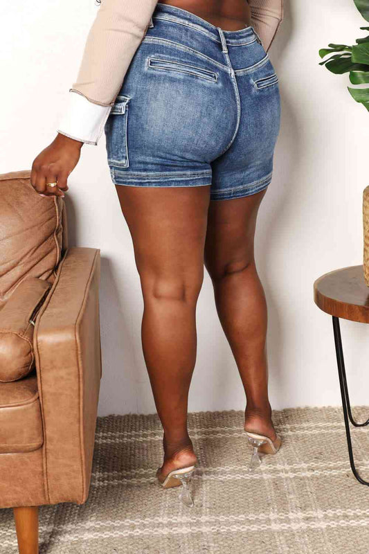 RISEN Full Size High Rise Side Cargo Pocket Shorts