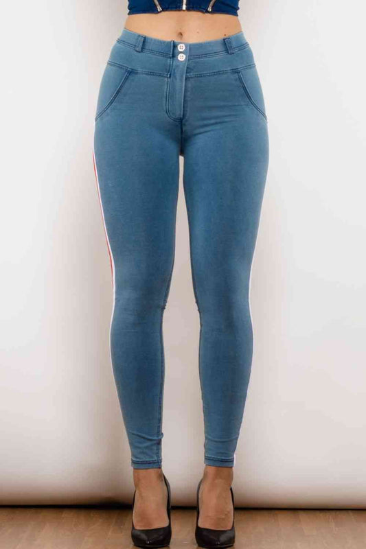 Side Stripe Contrast Buttoned Skinny Jeans