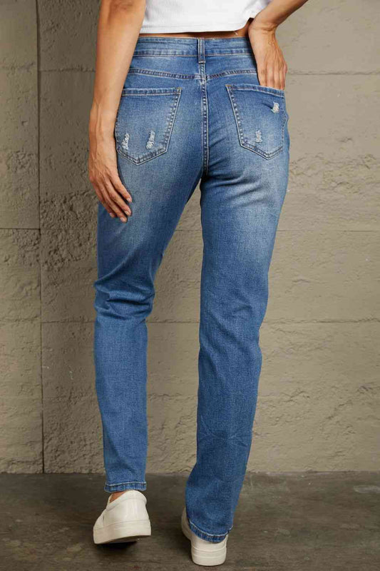 Distressed High Waist Straight Jeans