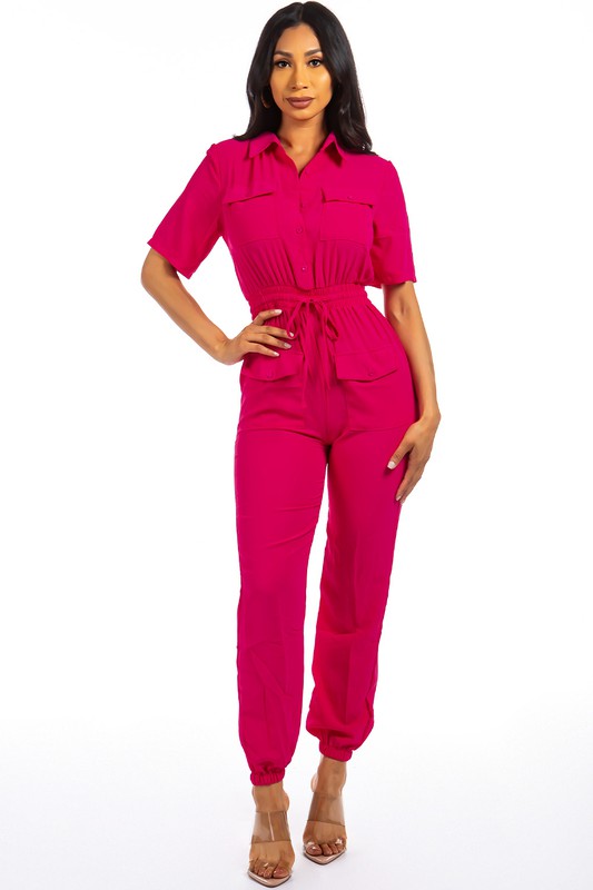 Spring Short Sleeve Jumpsuit W/Pocket