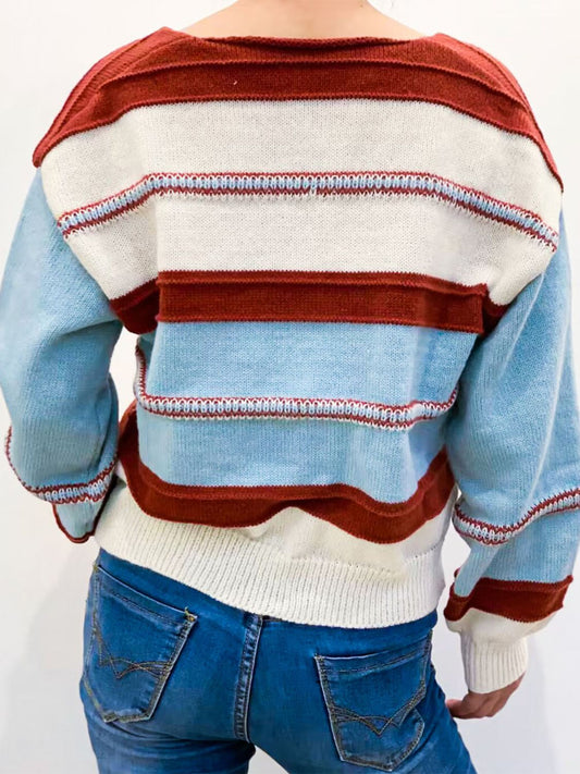 Regular price $41.00 CADRegular priceUnit price / perSale price $41.00 CADStriped Round Neck Long Sleeve Sweater