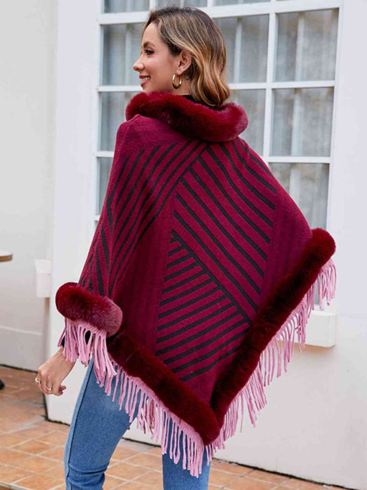 Faux Fur Trim Poncho