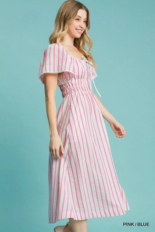 Umgee Smocked Striped Short Sleeve Midi Dress