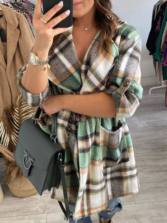 Regular price $113.00 CADRegular priceUnit price / per$113.00 CADSale price $113.00 CADOversized Drawstring Plaid Button Front Shirt
