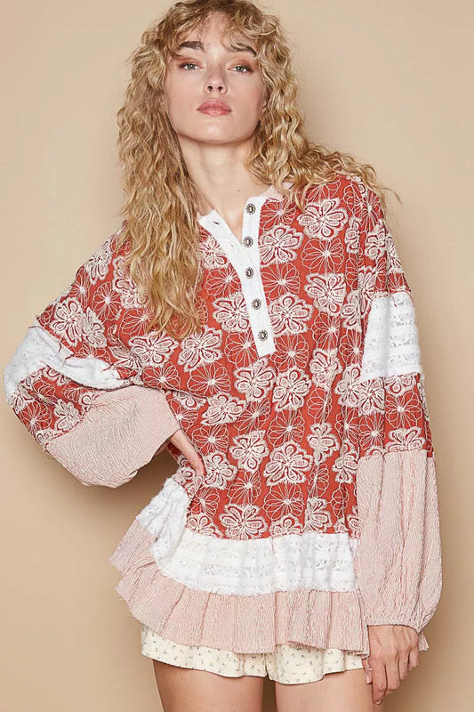 Regular price $123.00 CADRegular priceUnit price / per$123.00 CADSale price $123.00 CADPOL Ruffled Hem Floral Pattern Balloon Sleeve Hoodie