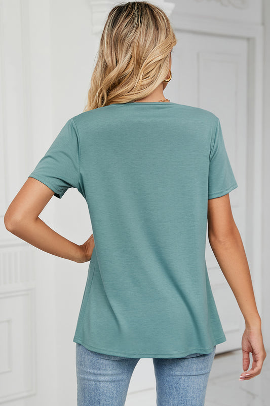 Decorative Button V-Neck Short Sleeve T-Shirt