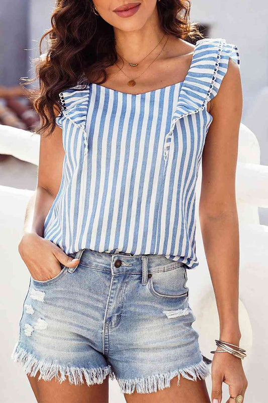 Regular price $55.00 CADRegular priceUnit price / perSale price $55.00 CADStriped Tie Back Ruffled Tank
