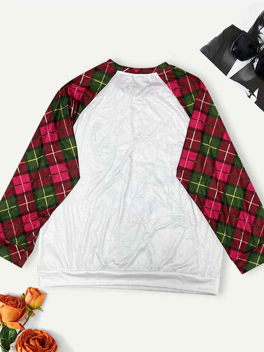 Plus Size Reindeer Graphic Plaid Long Sleeve T-Shirt