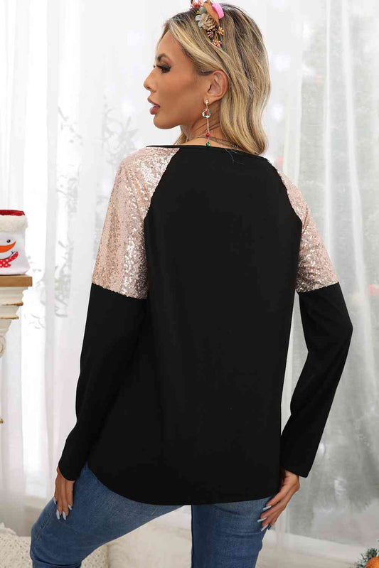Regular price £25.00 GBPRegular priceUnit price / perSale price £25.00 GBPSequin Round Neck Raglan Sleeve Top