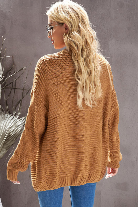Waffle-Knit Open Front Dropped Shoulder Sweater