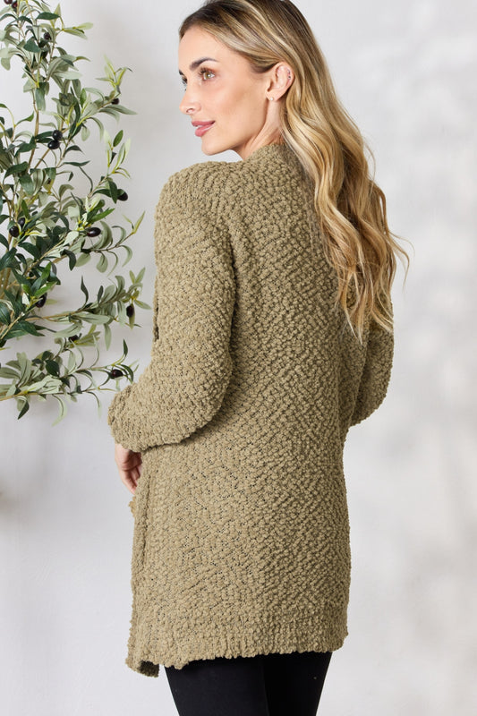 Zenana Falling For You Full Size Open Front Popcorn Cardigan