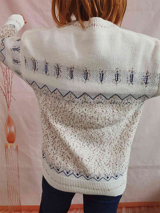 Geometric Button Front Long Sleeve Cardigan