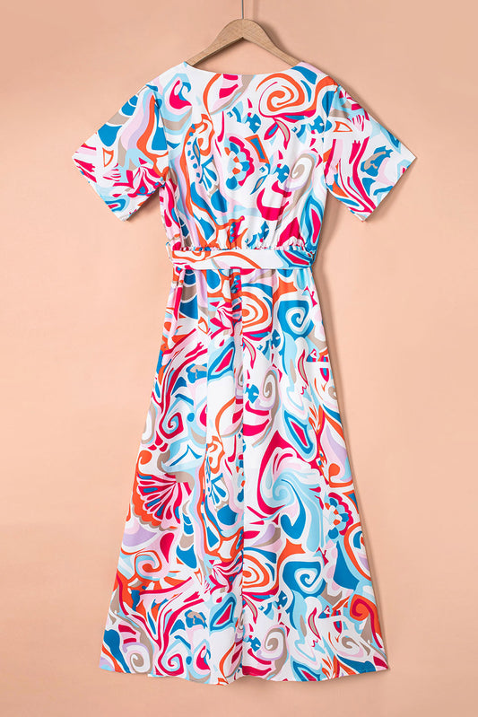 Printed Short Sleeve Tie Waist Dress