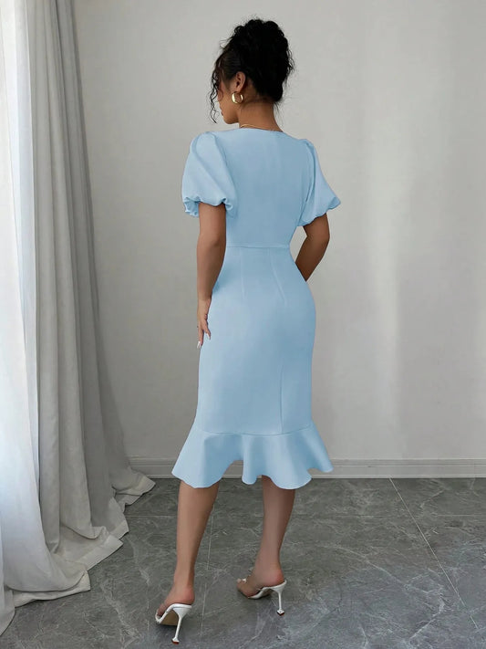Ruffled Hem Puff Sleeve Mini Dress