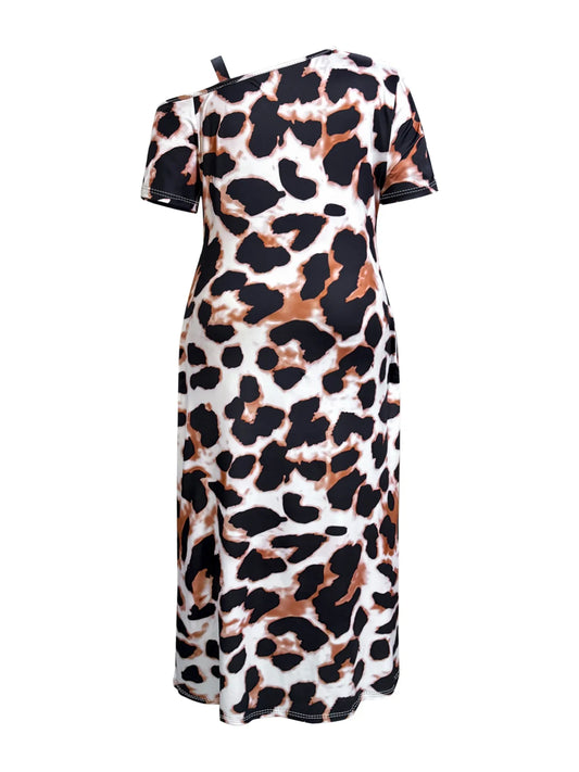 Plus Size Leopard Print Short Sleeve Maxi Dress with Side Slit