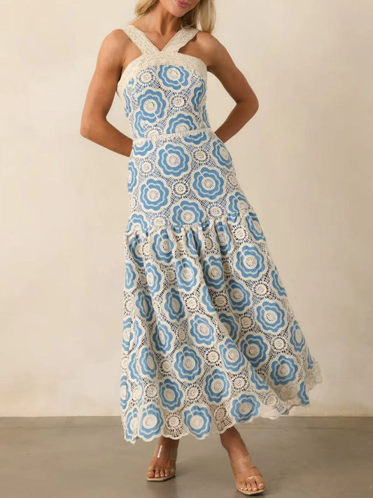 Sleeveless Ruffled Tiered Dress with Embroidered Trim