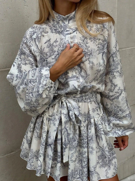 Regular price £56.00 GBPRegular priceUnit price / per£56.00 GBPSale price £56.00 GBPPrinted Balloon Sleeve Tie Waist Dress