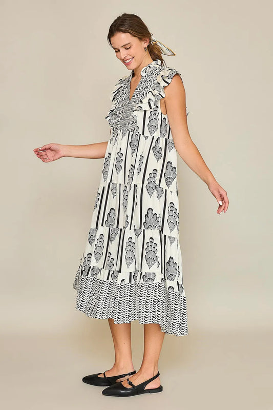 Umgee Striped Ruffle Cap Sleeve Midi Dress