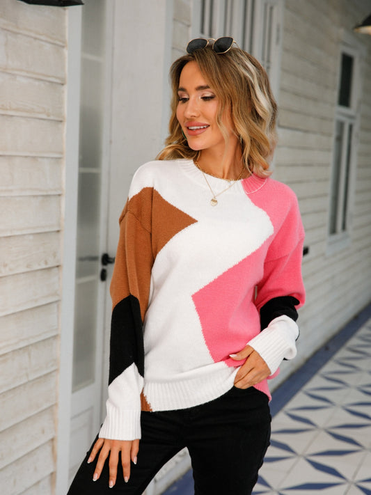 Regular price £38.00 GBPRegular priceUnit price / per£38.00 GBPSale price £38.00 GBPColor Block Round Neck Dropped Shoulder Sweater