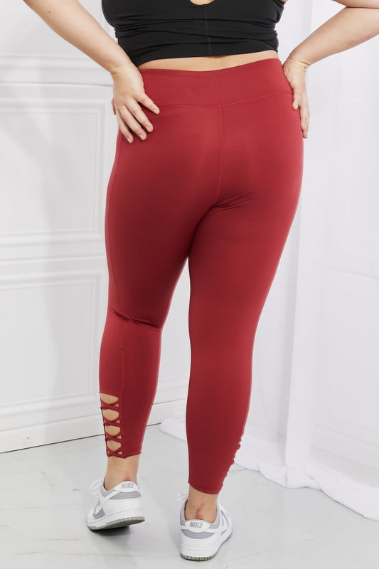 Yelete Ready For Action Full Size Ankle Cutout Active Leggings in Brick Red