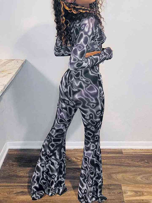 Leg-Of-Mutton Sleeve Top and Flare Pants Set