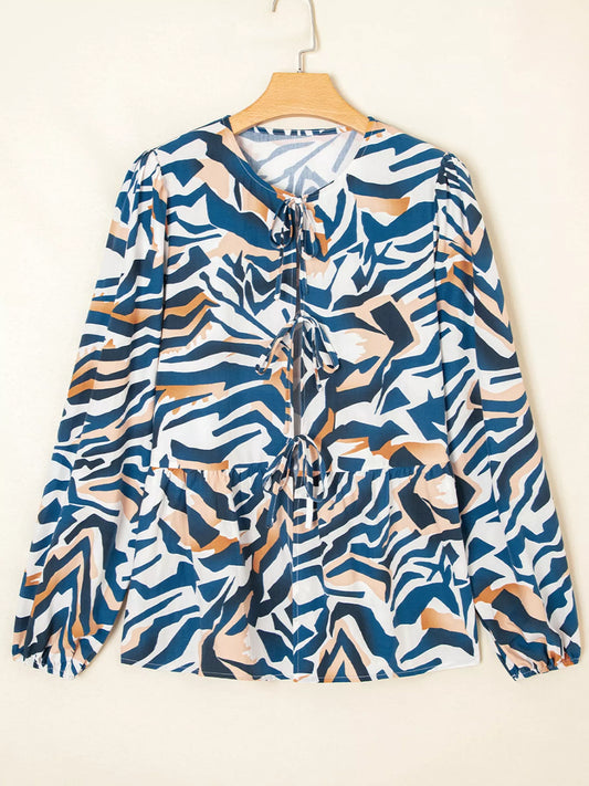 Tie Neck Lace Ruffle Detail Long Sleeve Blouse