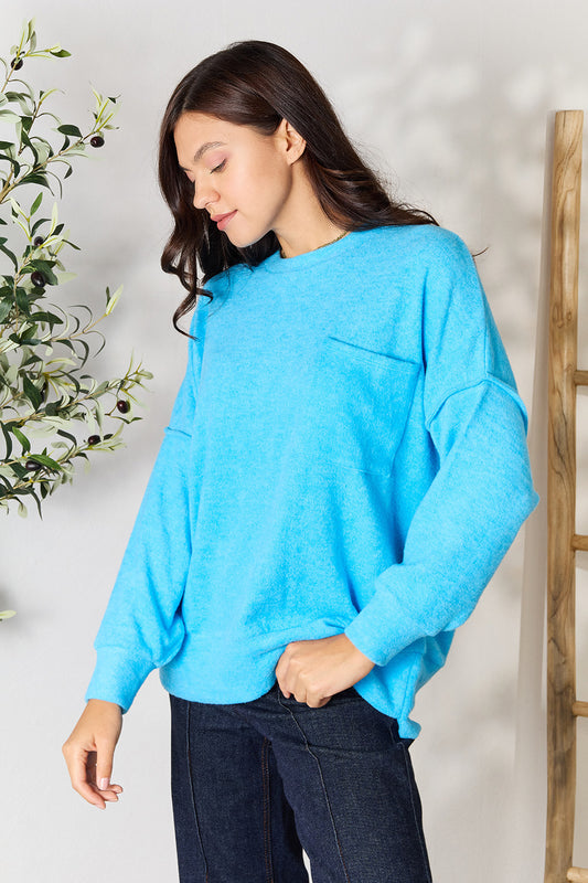 Zenana Round Neck Long Sleeve Sweater with Pocket