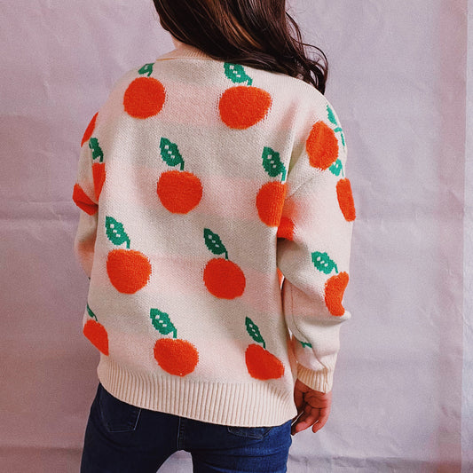 Pumpkin Embroidery Long Sleeve Sweater