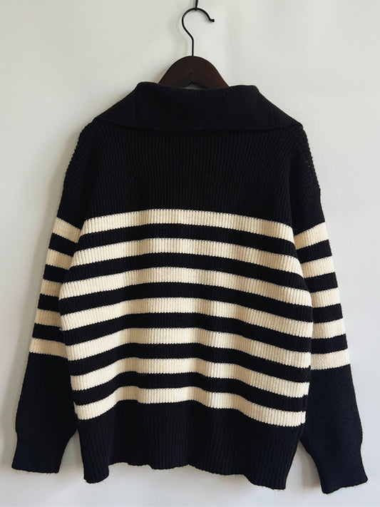 Striped Half Zip Collared Sweater