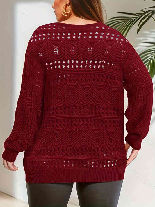 Plus Size Openwork Plunge Long Sleeve Sweater