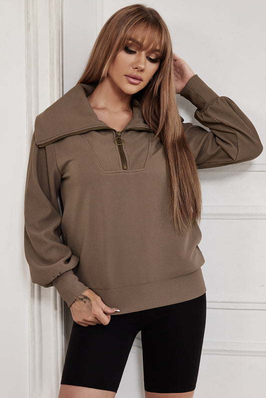 Pocketed Quarter Zip Collared Neck Sweatshirt