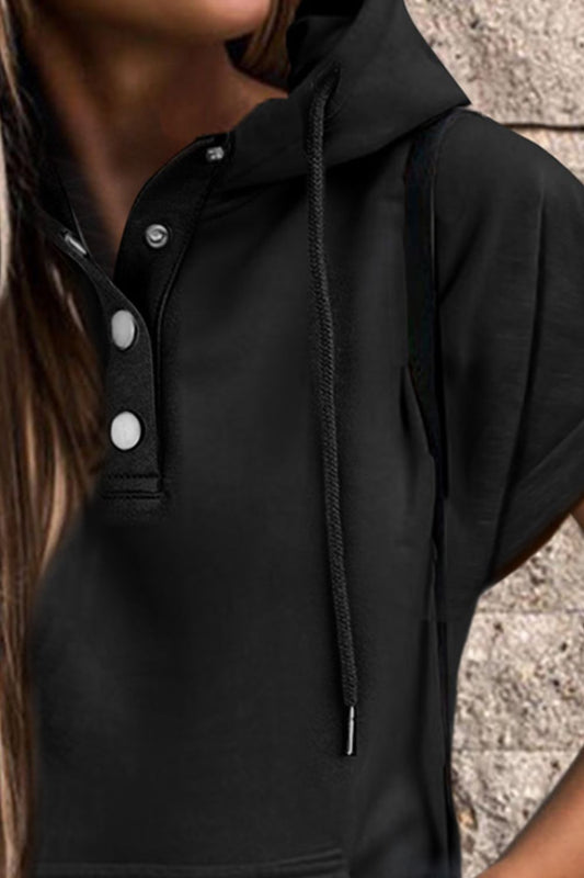 Quarter Snap Drawstring Short Sleeve Hoodie