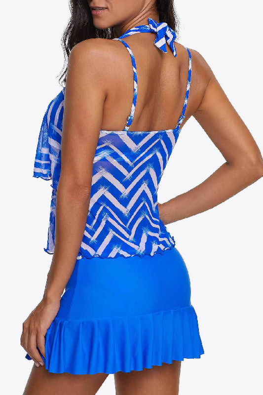 Chevron Two-Tone Ruffled Two-Piece Swimsuit