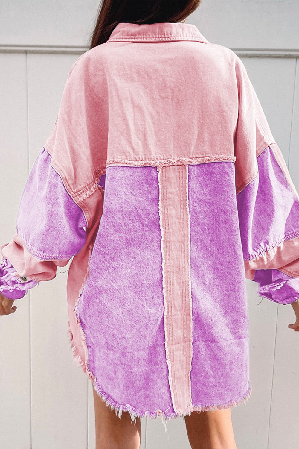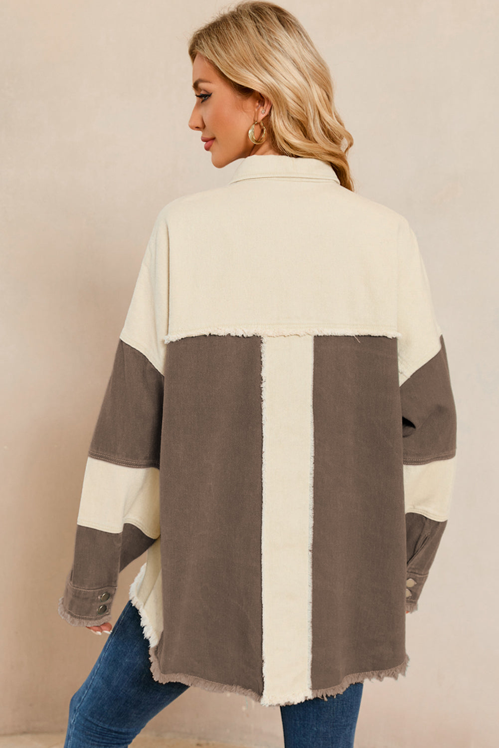 Color Block Button Up Raw Hem Denim Jacket