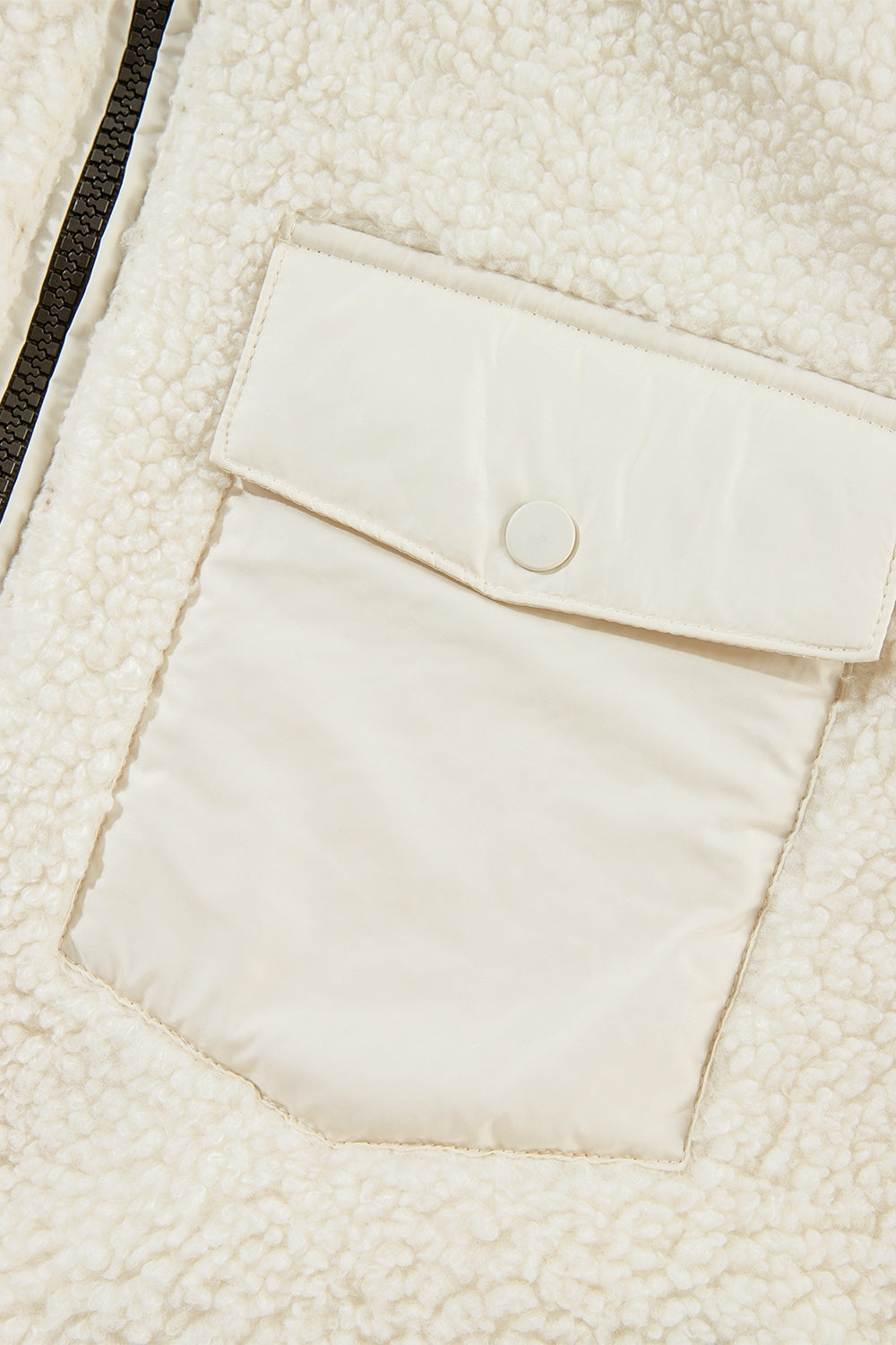 Drawstring Zip Up Sherpa Jacket with Removable Hood