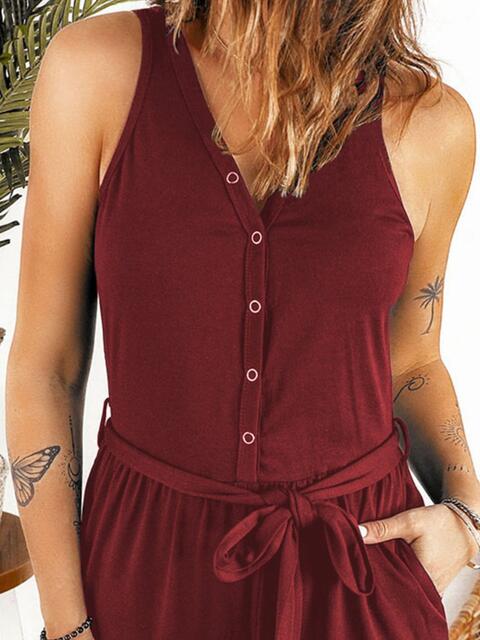 Full Size Tie Waist Sleeveless Jumpsuit with Pockets