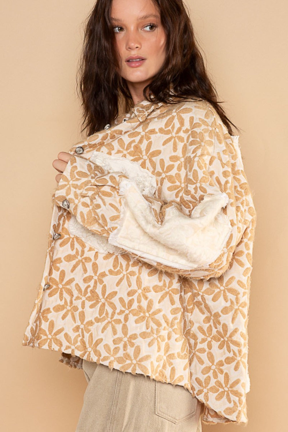 POL Floral Pattern Jacquard Shacket with Chest Pocket
