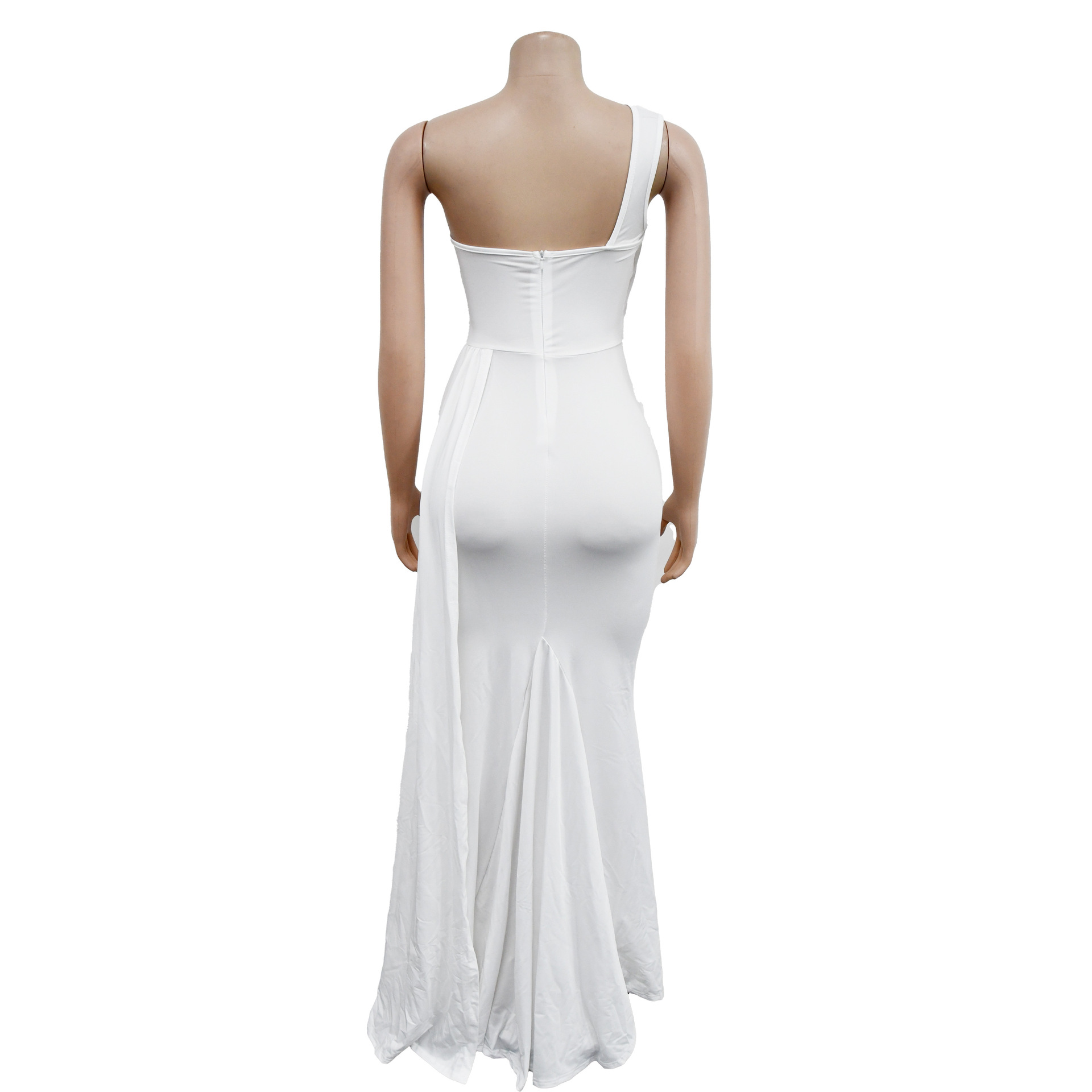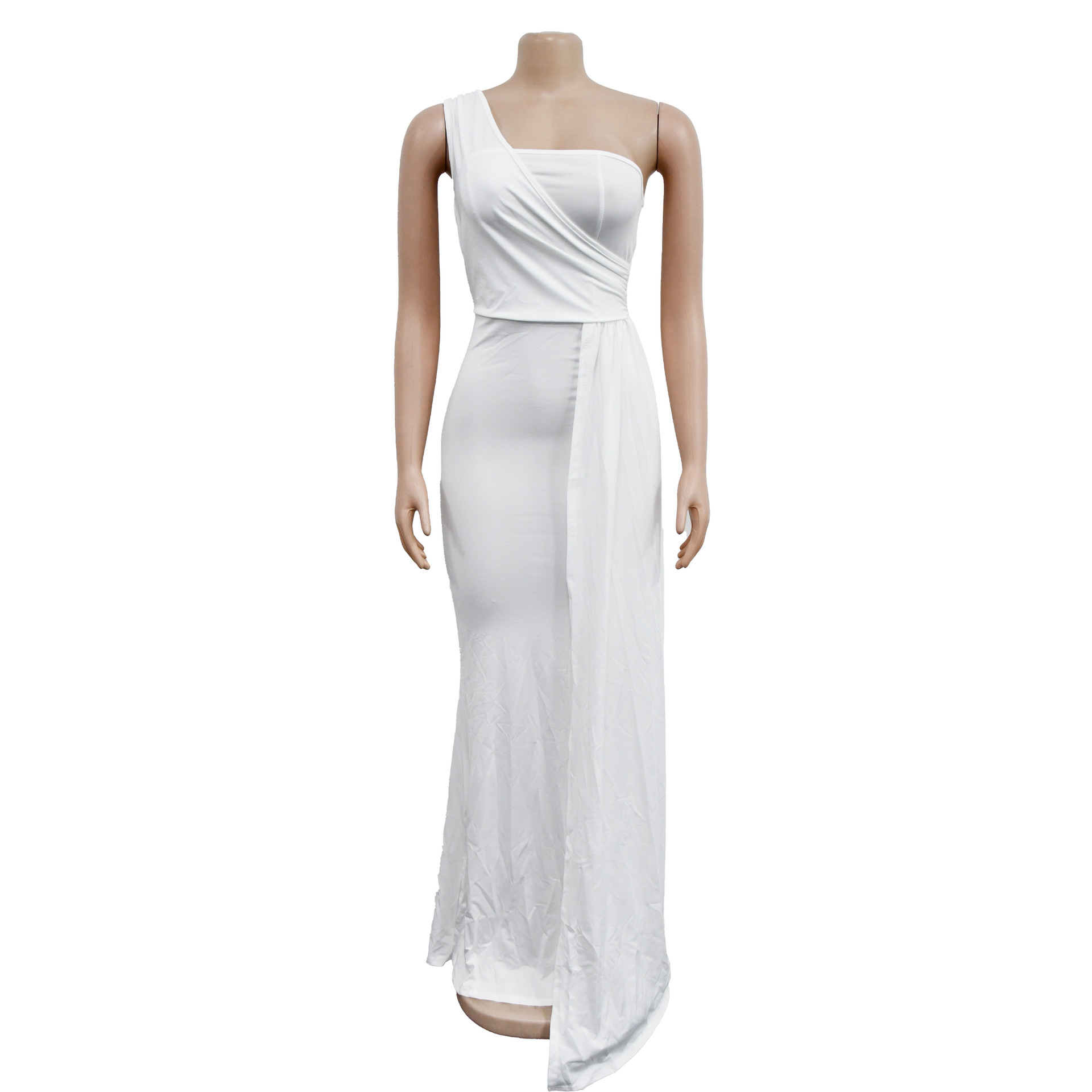 Solid Color Party Tight One Shoulder Sleeve Dress Maxi Dress Women