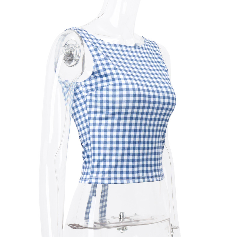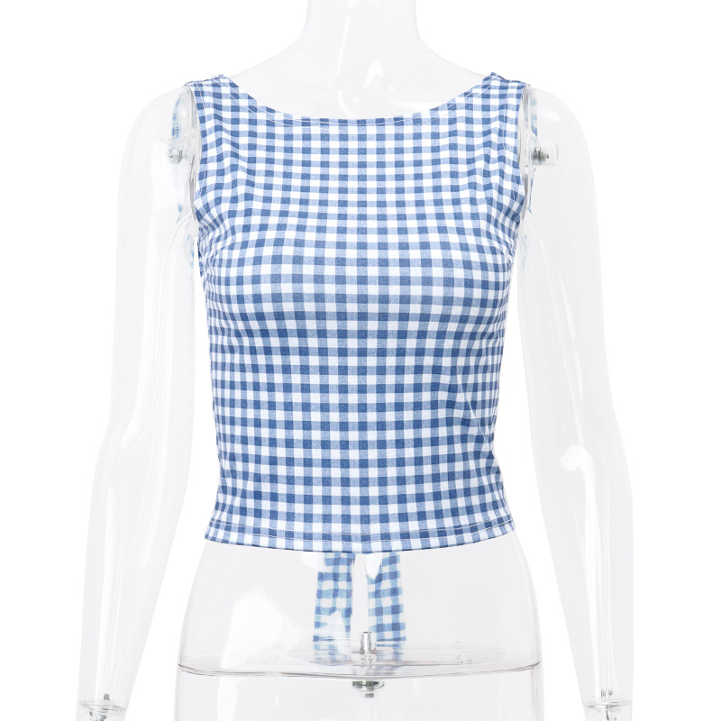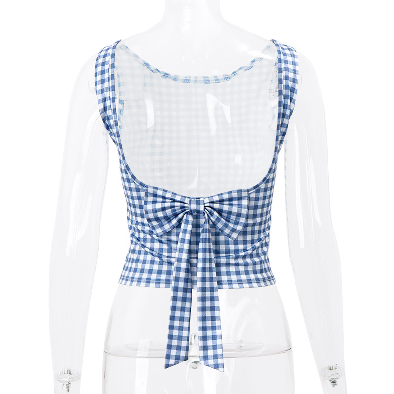 Summer Women Clothing Sexy Houndstooth Bow Strap Elegant Slim Vest Women